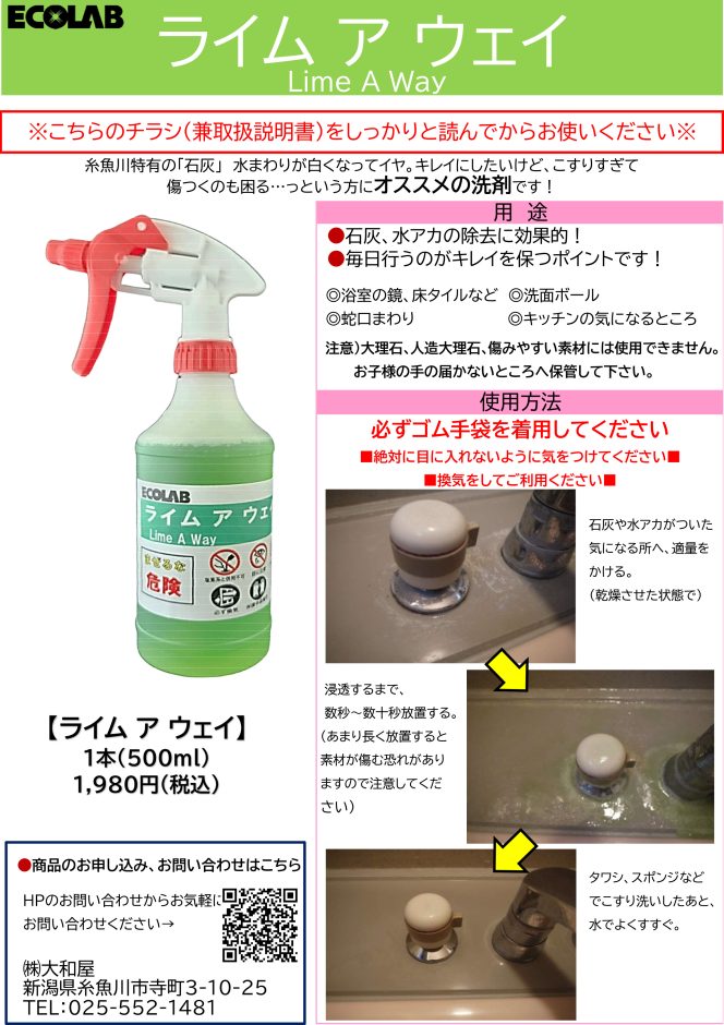 糸魚川特有の石灰をキレイに落とせる洗剤です。